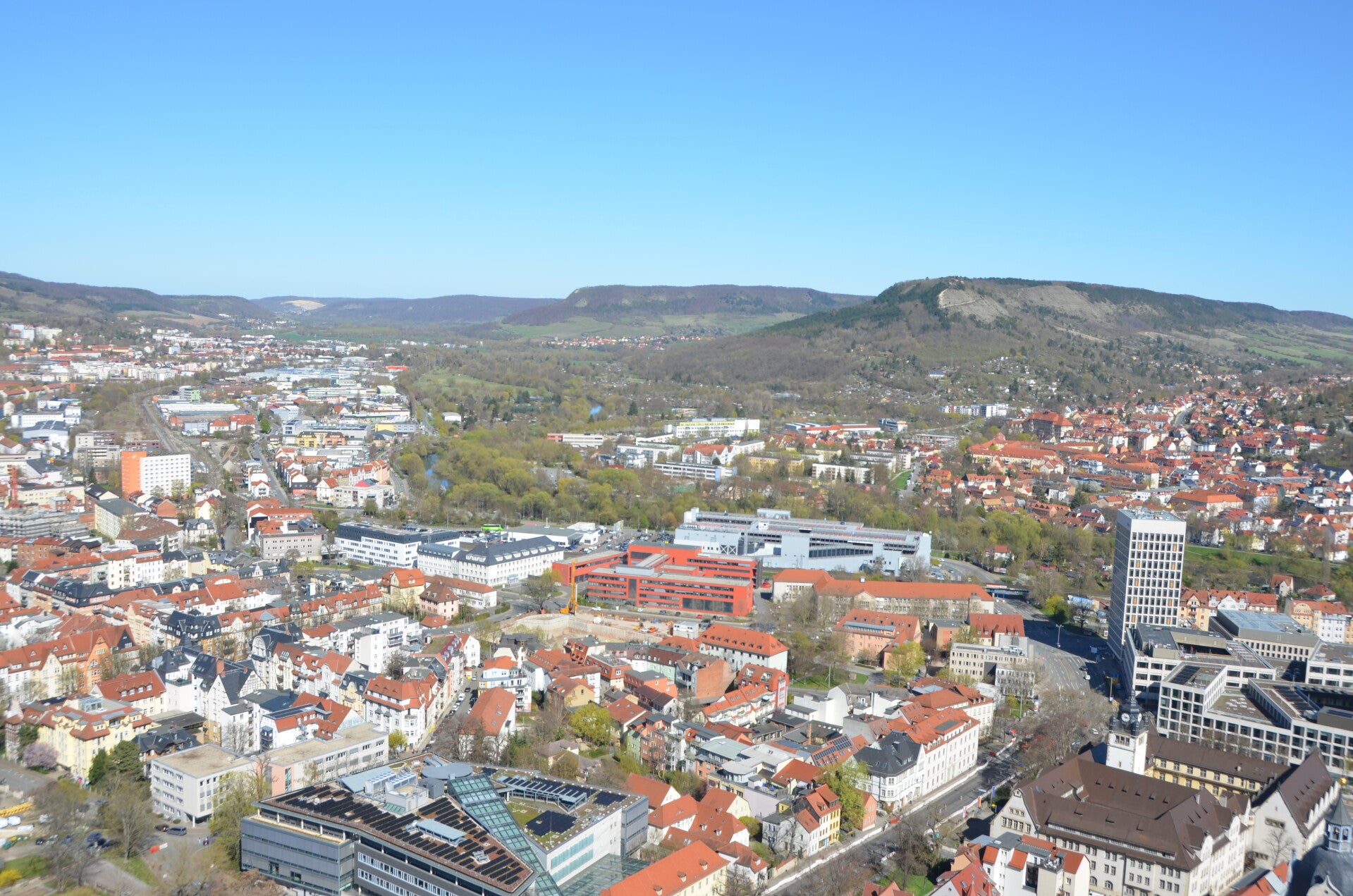 Von nahezu jedem Punkt in Jena ist der JenTower sichtbar und sollte auf Ihrer Liste der Sehenswürdigkeiten während Ihres Besuchs in Jena unbedingt eingeplant werden. Die Aussichtsplattform im 28. Stock bietet Ihnen einen atemberaubenden Rundumblick über die Stadt. Hier können Sie die charmanten kleinen Gassen und Straßen bewundern und gleichzeitig einen herrlichen Ausblick auf die umliegenden Berge und Siedlungen genießen. Ein Besuch des JenTower ist daher durchaus empfehlenswert.