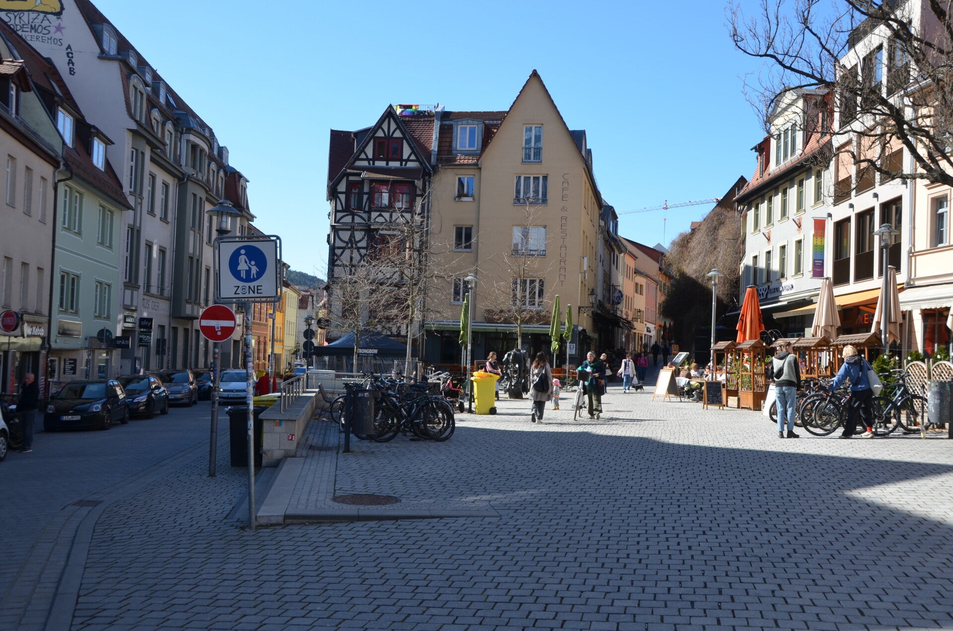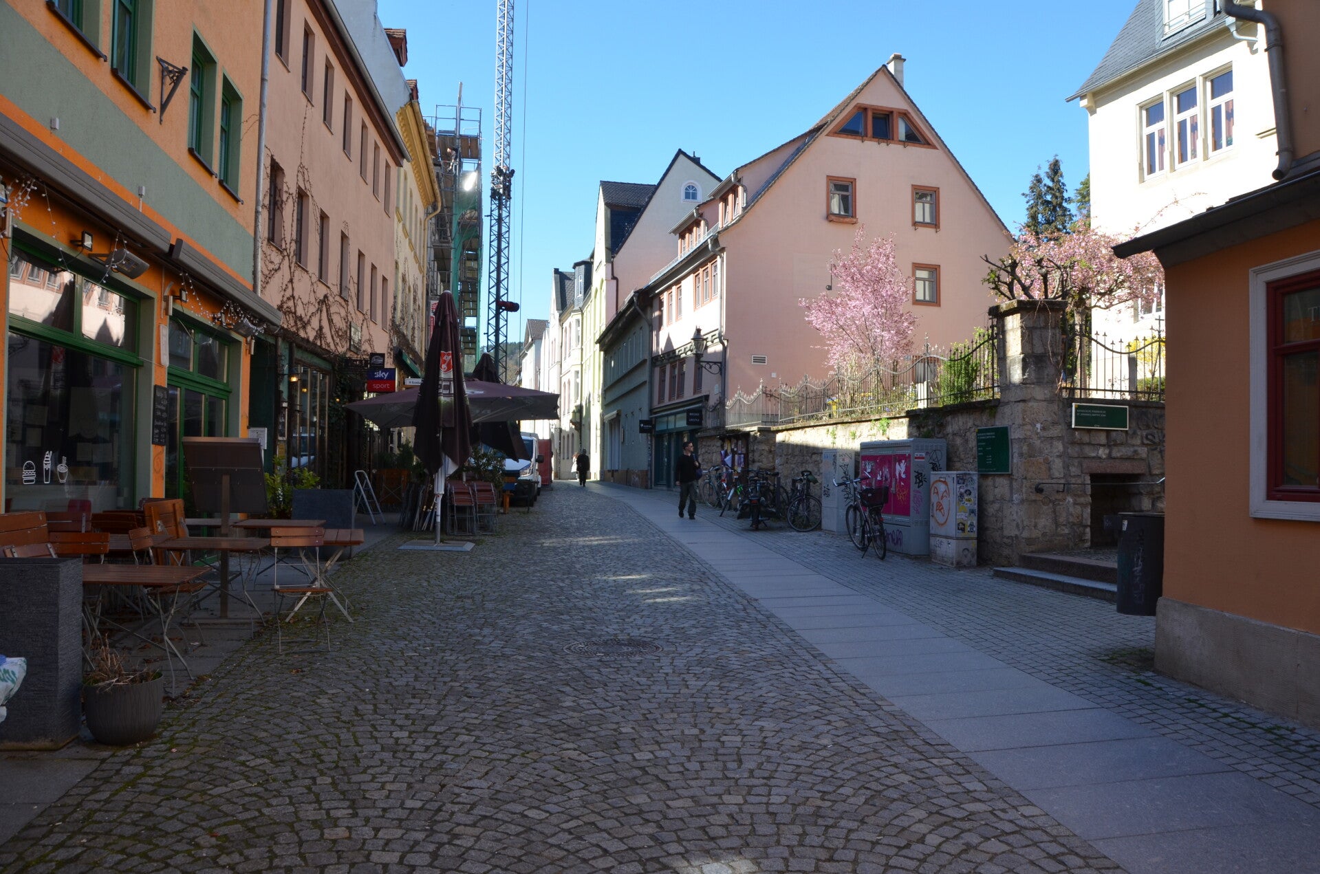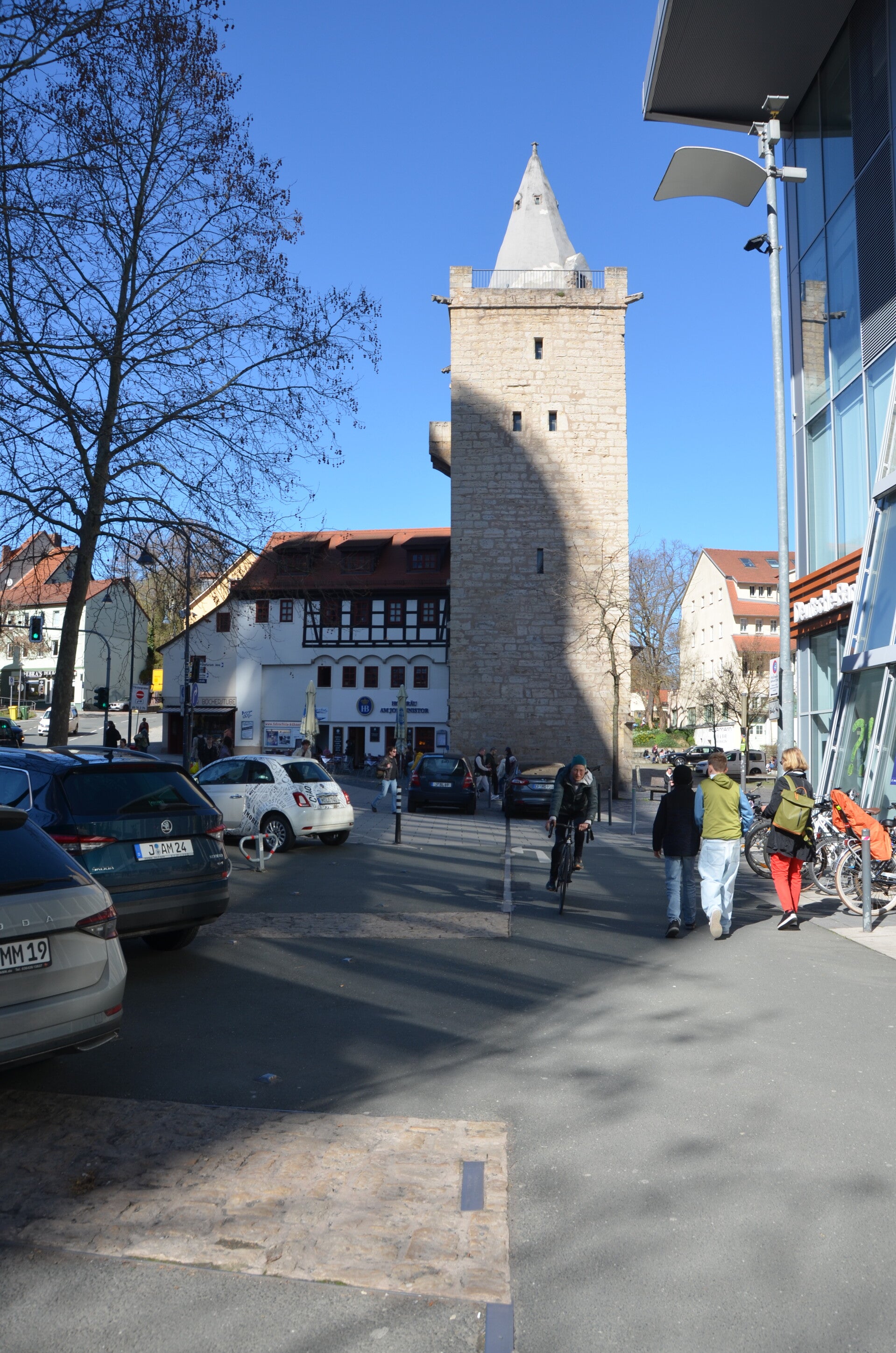 Bei dem angenehmen Wetter bietet es sich an, die Stadt und ihre zahlreichen Fußgängerzonen in angemessener Ruhe zu erkunden. Besonders hervorzuheben sind die charmanten Gassen, die eine vielfältige Auswahl an Gastronomie und Einzelhandel präsentieren, sowie die Kunstwerke, welche im öffentlichen Raum zur Schau gestellt werden. Ein herausragendes Ziel ist die Stadtkirche St. Michael. Bedauerlicherweise ist der Innenbereich der Kirche derzeit aufgrund erforderlicher Sanierungsarbeiten für Besuche geschlossen. Dennoch besteht die Gelegenheit, einen Eindruck von dem aktuell leerstehenden Kirchengebäude zu gewinnen, dessen imposante Dimensionen nur schwer zu fassen sind.
