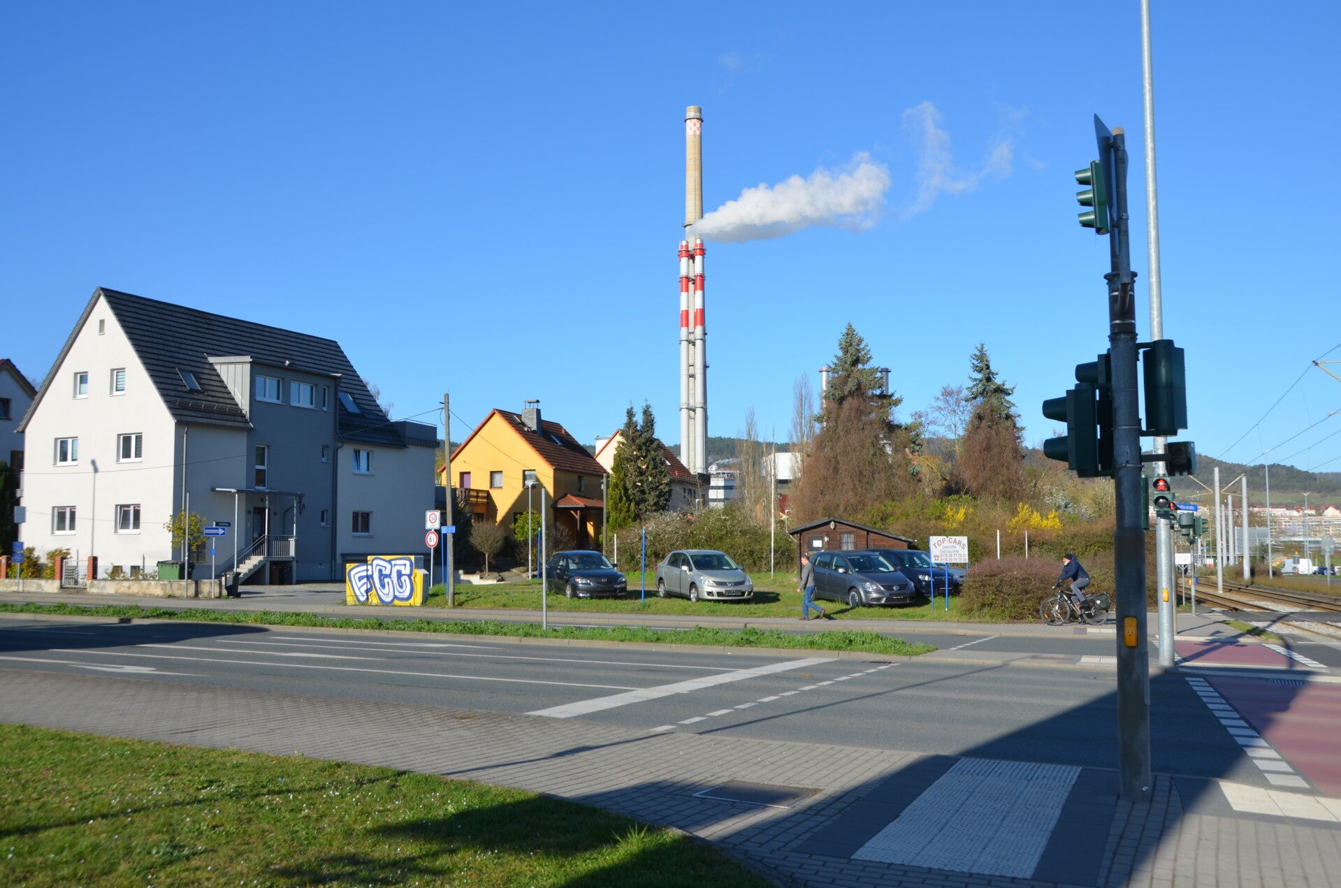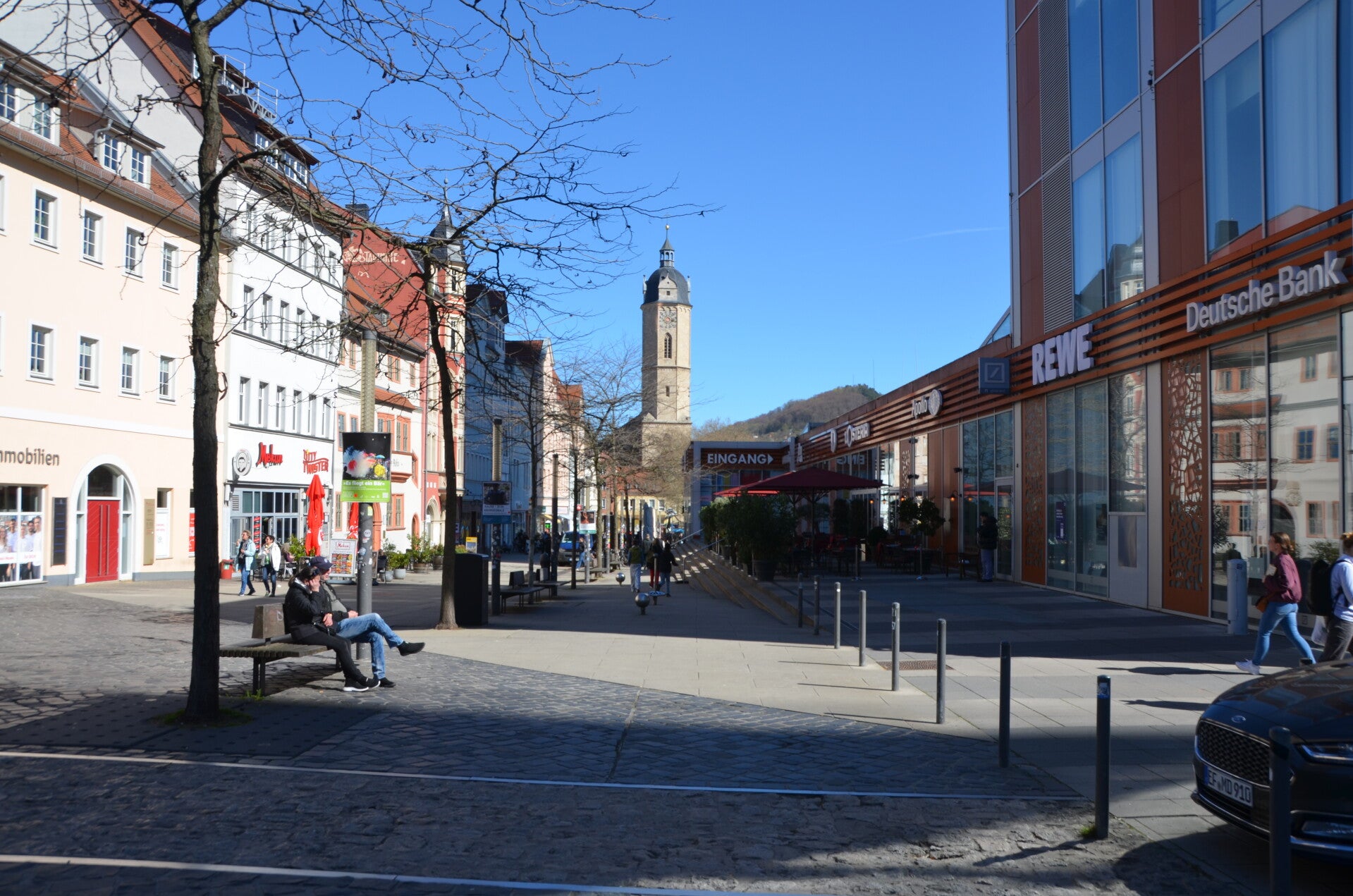 Nach einer stärkenden Mahlzeit konnte ich meine Erkundungstour durch die Stadt Jena beginnen. Mit der Straßenbahn erreichte ich den reizvollen Stadtteil Jena-Burgau. Es ist zu beachten, dass dieser Stadtteil neben seiner ländlichen Prägung auch ein Einkaufszentrum in einer idyllischen Umgebung beherbergt. Obwohl ein solches Einkaufszentrum wirtschaftliche Vorteile für die Region mit sich bringt, könnte es potenziell die gewachsene ländliche Idylle beeinträchtigen.