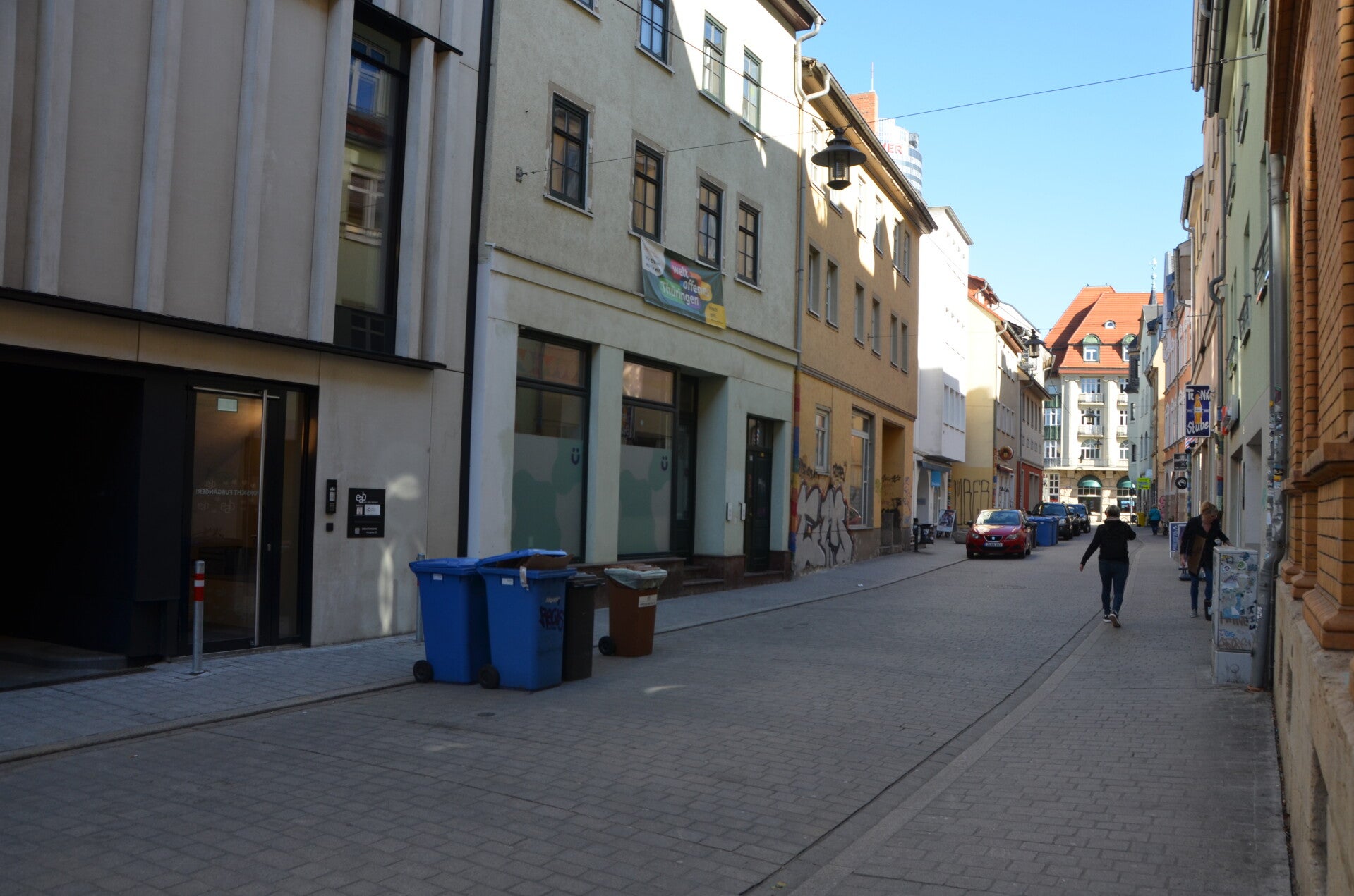 Ab Saalfeld dauert die Fahrt noch etwa 40 Minuten, bis man am Bahnhof Paradies in Jena aussteigt. Ein treffender Name für einen Bahnhof, der dem Ort gerecht wird.