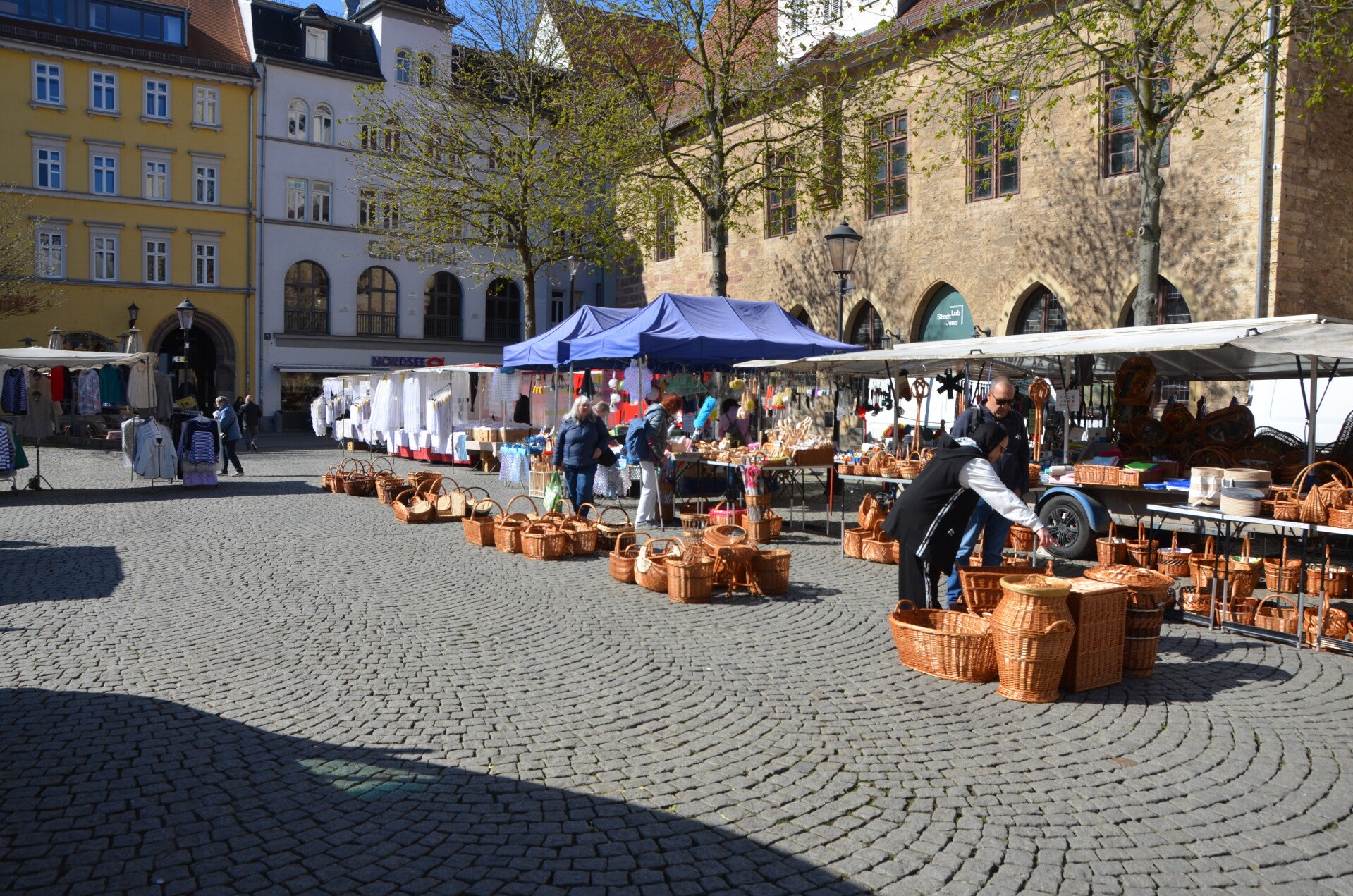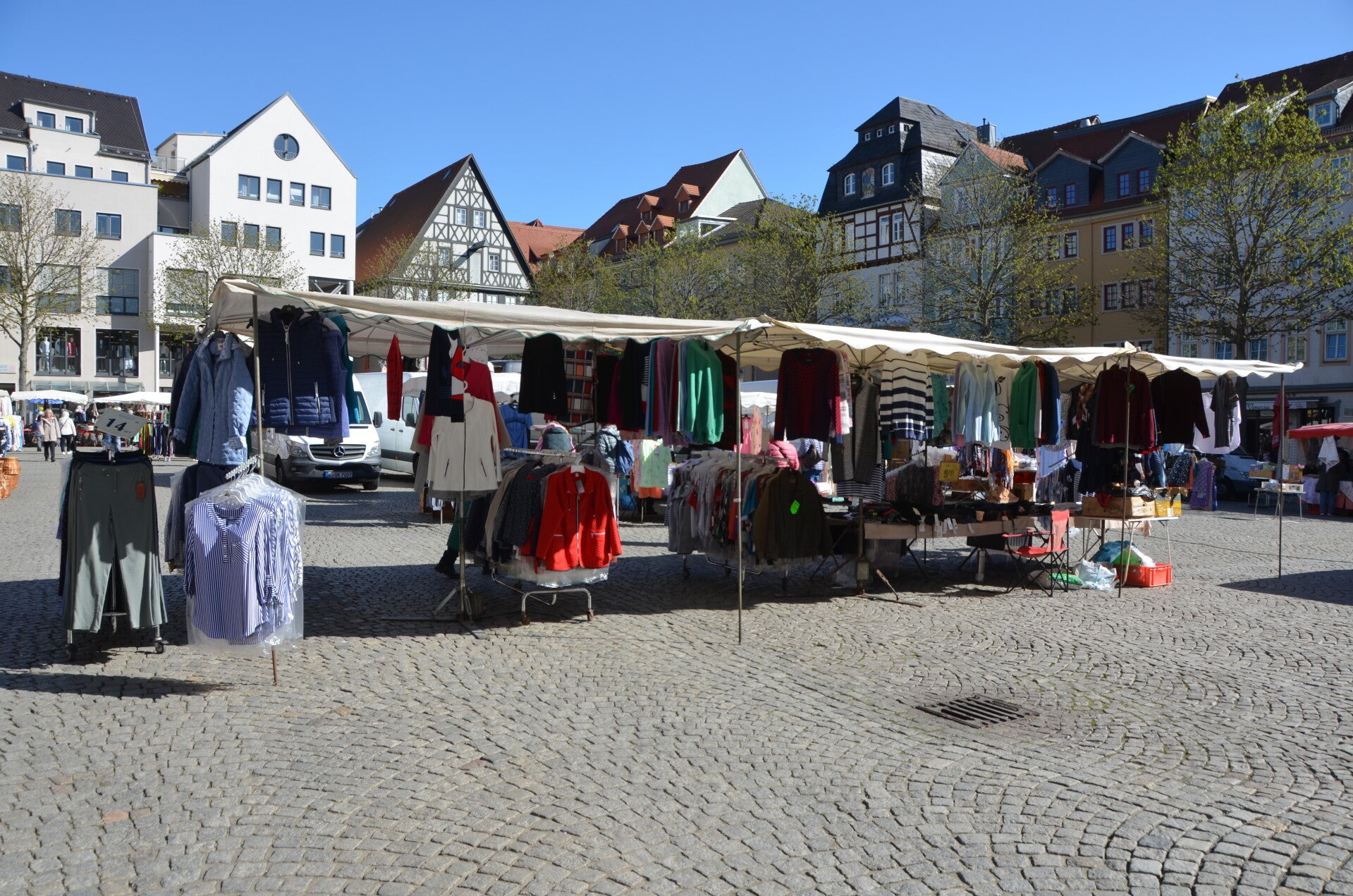 An diesem Mittwoch wurde auf dem Markt ein vielfältiger Kleidungs- und Trödelmarkt veranstaltet, der ein breites Sortiment an Waren präsentierte und zahlreiche Besucher in die Stadt zog. Besonders bemerkenswert war die charmante Initiative einiger Cafés, die mit liebevoll platzierten Teddybären an den Tischen Gäste anlockten.